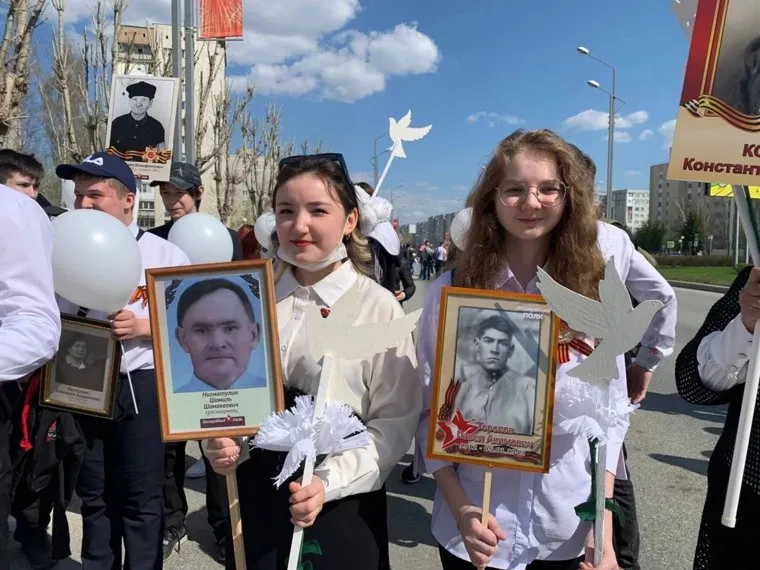 11:52 . Акция «Бессмертный полк» проходит во всех городах Тюменской области. На фото — юные жительницы Тобольска