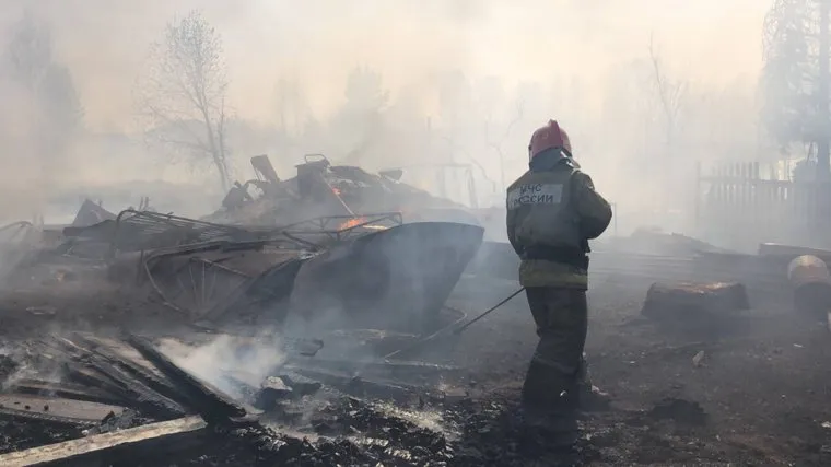 19:34 Спасатели потушили открытое горение на пожаре в поселке Крутой