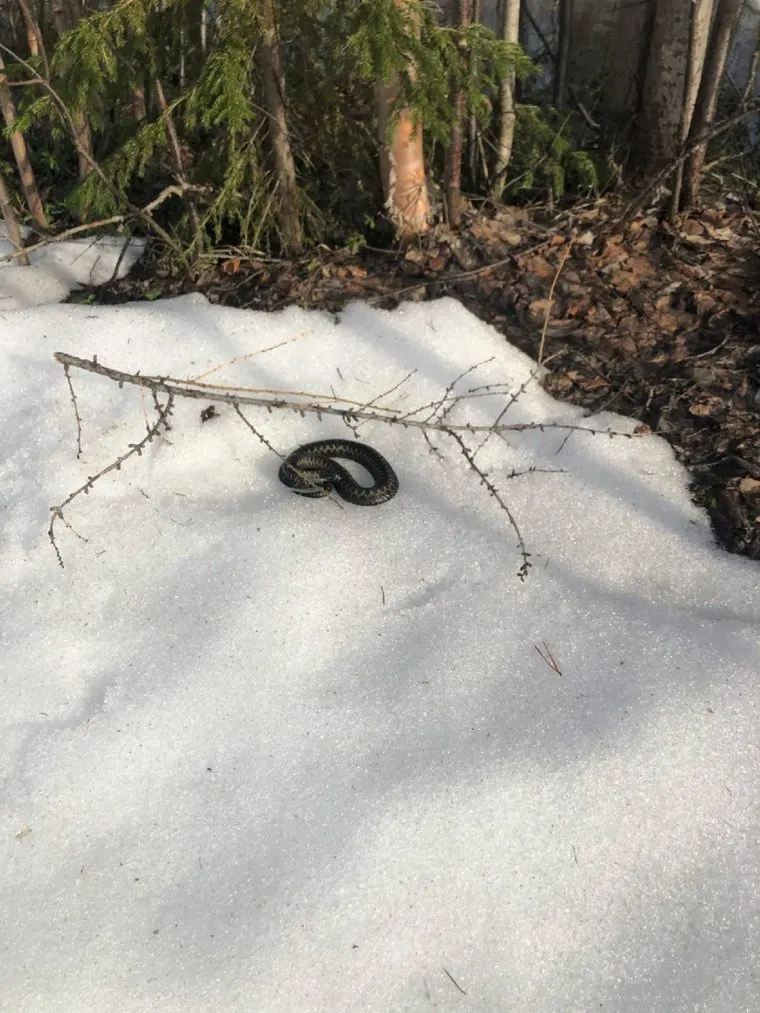 Любители активного отдыха в Ноябрьске (ЯНАО) обнаружили на снегу ядовитую змею — гадюку. Об этом сообщили местные жители, опубликовав фото пресмыкающейся в соцсети во «ВКонтакте».