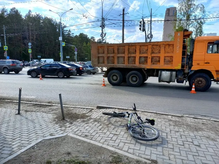 В Екатеринбурге грузовик въехал в подростка на велосипеде. Видео