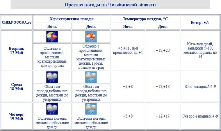 «По данным Челябинского ЦГМС, днем 18 мая на территории Челябинской области прогнозируются сильные дожди и грозы. Порывы ветра местами будут доходить до 20 метров в секунду», — пояснили URA.RU в пресс-службе ведомства.