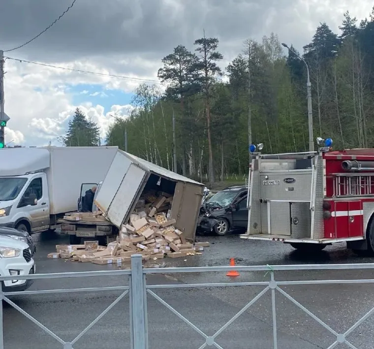 В Перми в результате аварии из фургона высыпались коробки с печеньем. На место ДТП уже прибыла скорая, сообщает паблик «Мой город — Пермь» в соцсети «ВКонтакте».