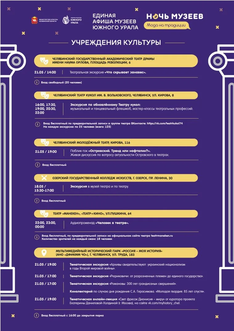 Учреждения культуры Челябинской области 21 мая будут принимать посетителей до глубокой ночи