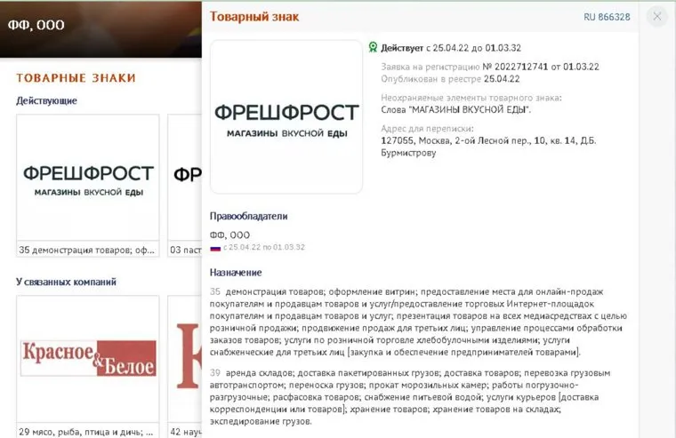 Принадлежащая челябинскому миллиардеру, основателю компании «Красное и Белое» Сергею Студенникову фирма «Фреш Фрост» зарегистрировала товарный знак «Фреш Фрост. Магазины вкусной еды». Соответствующая информация появилась на сайте сервиса СБИС.