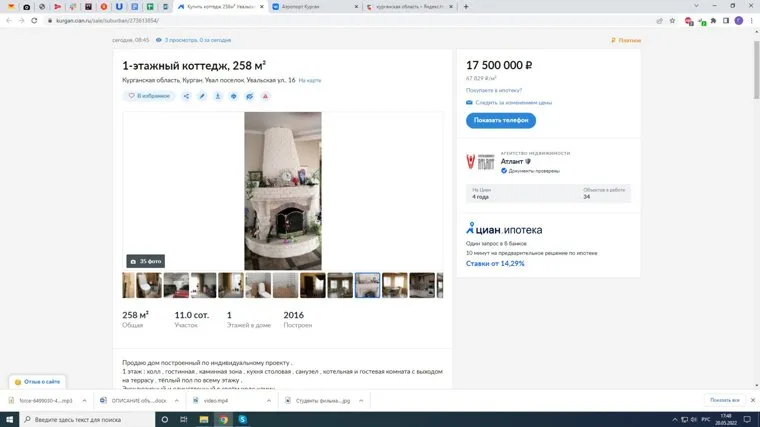 Помимо основного здания на участке расположены баня-гостевой дом и гараж, площадь которых по 90 квадратных метров. Площадь коттеджа — 258 квадратных метров. Автор объявления оценил коттедж и участок, расположенный в центре поселка Увал, в 17,5 млн рублей.