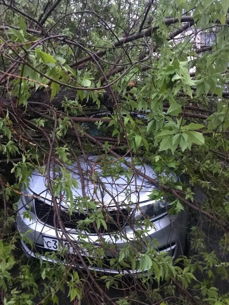 В Ленинском районе Магнитогорска Челябинской области упавшее дерево придавило припаркованный автомобиль «Киа Рио». Об этом владелица машины Наталья Янбахтова рассказала URA.RU.