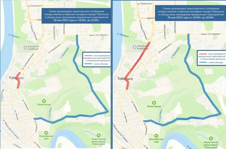 «В связи с проведением праздничных мероприятий, посвященных Дню химика, 28 мая в организацию дорожного движения на улицах Тобольска вносятся изменения. На ряде улиц будет перекрыто движение для транспорта», — рассказали URA.RU в пресс-службе администрации города.