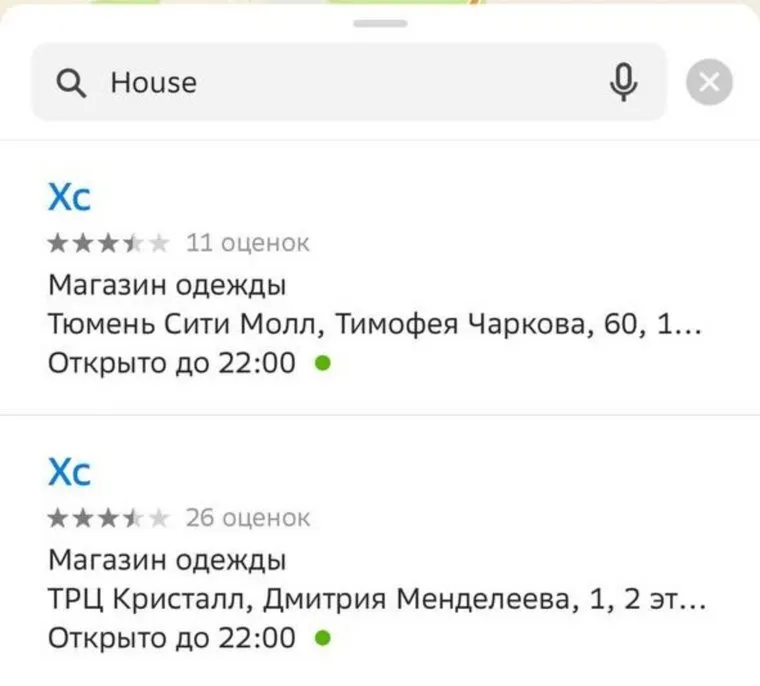 Названия магазинов изменились в 2ГИС на более короткие. Бренд Mohito теперь называется М. Reserved переименовали в Re. Также свои названия сменили магазины Cropp и House на Cr и Хс. Sinsay теперь стали называться — Син.