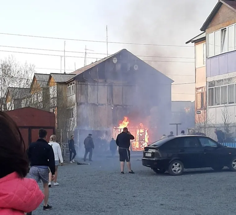 Во время пожара в пристрое между жилыми домами в Лабытнанги (ЯНАО) взорвались два газовых баллона. Жители домов 6 и 6а по улице Уральской совместными усилиями тушили огонь, сообщают очевидцы пожара в соцсети «ВКонтакте».