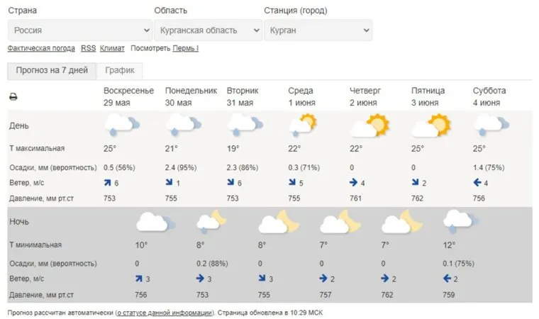 Погода на конец мая и начало июня в Курганской области от Росгидрометцентра