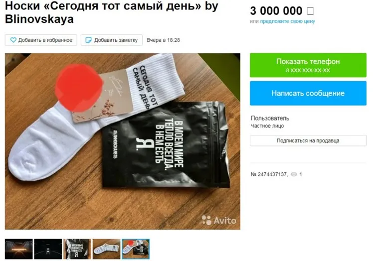 Челябинец продает носки от Блиновской за 3 миллиона рублей. «Они заряжены на исполнение желаний»