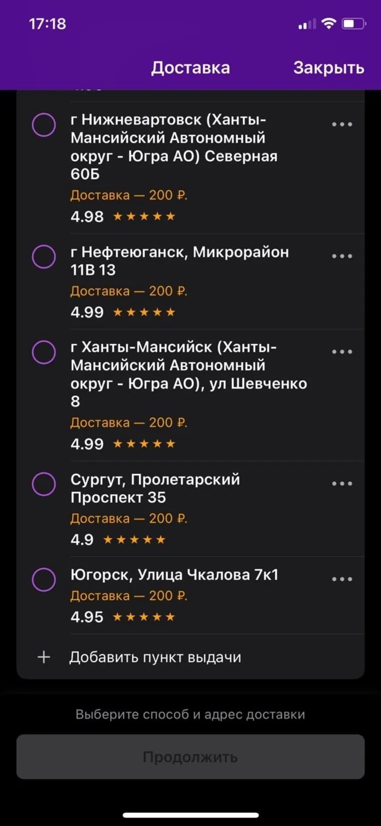 - Дарья04 июня 2022 16:13Стрежевой Томская обл. также беда 200 рублей доставка, поддержка пишет доставка бесплатна, но перегружен пункт , странно эти пункты теперь всегда у них перегружены.....Нафиг их и правда обнаглели...