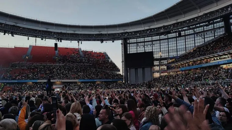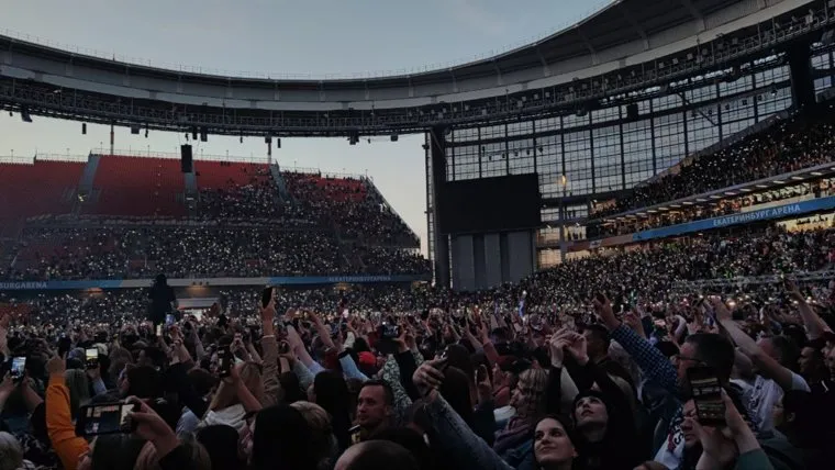 На «Екатеринбург-Арене» 4 июня состоялся концерт группы «Руки вверх», во время исполнения одного из хитов организаторы приглушили свет и тысячи екатеринбуржцев зажгли фонарики на телефонах. Об этом сообщает корреспондент URA.RU c места событий.