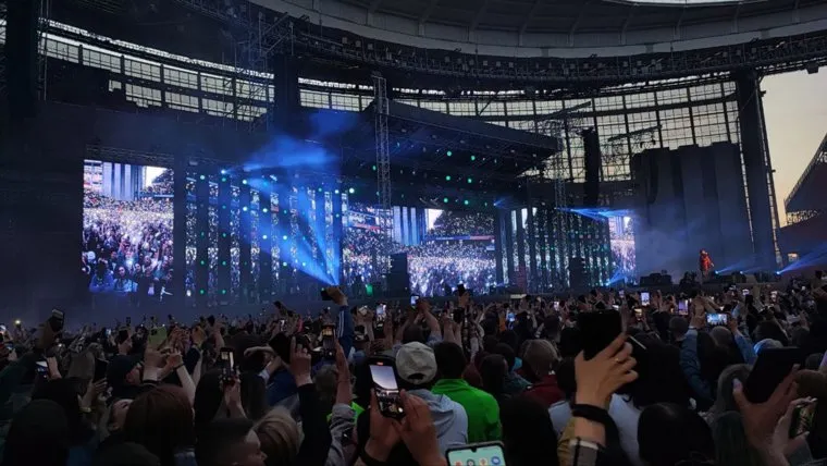 Ранее URA.RU сообщало, что за несколько часов до концерта многие фанаты уже были на стадионе из-за чего организовалась длинная очередь в туалет. Агентство подробно рассказывало детали с концерта Жукова.