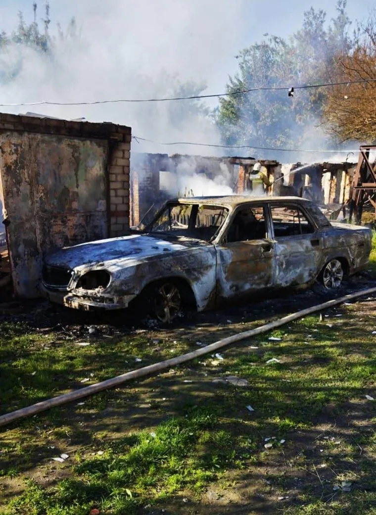 В результате обстрела разрушено здание и сгорел автомобиль