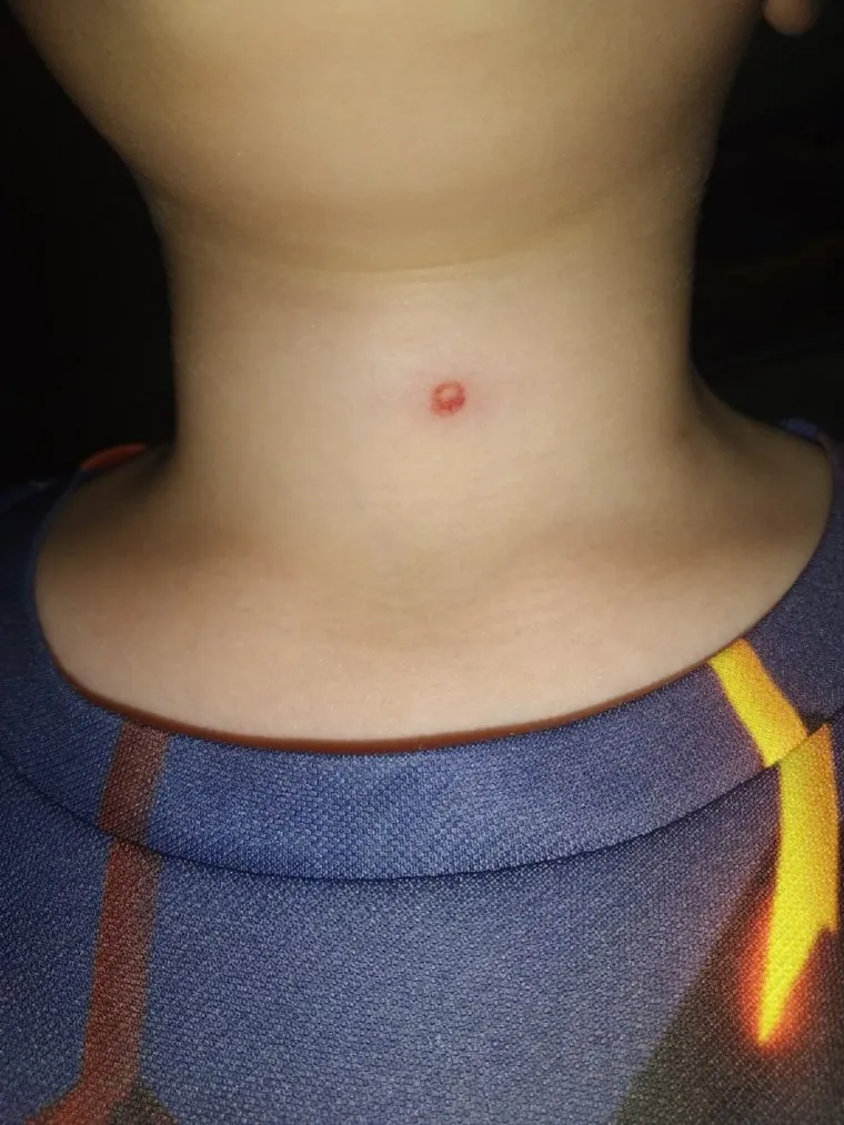 «В поселке Московский во дворе дома по адресу Озерная, 5 с сыном произошел инцидент. Кто-то с балкона этого дома стрелял пульками по детям, гуляющим на площадке. Моему сыну попали в шею и вторая пулька прилетела в козырек кепки. Другому мальчику попали в плечо. Если у кого-то дети видели, откуда стреляли, или тоже пострадали, напишите, пожалуйста, мне в личку. Может, чьи-то дети были в гостях в том доме. Вы же должны знать, есть у вашего ребенка подобный пистолет или нет», — заявила в своей публикации Ксения Жукова, приложив подтверждающее фото.