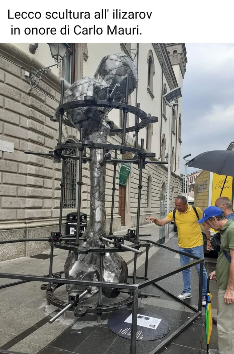 «Экспонат со знакомыми всему ортопедическому миру очертаниями появился на площади у Палаццо Пауре (г. Лекко, Италия). Скульптуру высотой 3,5 метра и весом 400 кг создал албанский художник Джетмир Петерникай. Ее создание приурочено к открытию выставки „Карло Маури, рожденный в восхождении“ и посвящено важной главе жизни итальянского альпиниста и путешественника Карло Маури, его знакомству с ортопедом Гавриилом Илизаровым и истории исцеления в Кургане», — говорится в сообщении НМИЦ ТО им. Илизарова.