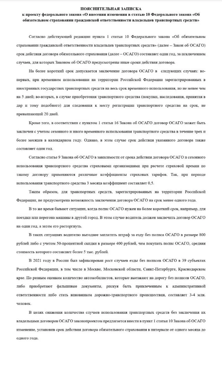 «Предлагаем в качестве минимального срока заключения договора ОСАГО один месяц вместо установленного сейчас года. Так автолюбителям не придется терять деньги и нервы, если застраховать машину нужно менее, чем на год», — написал Нилов в соцсети.