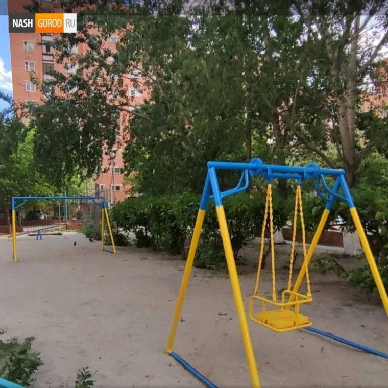 В одном из дворов Тюмени покрасили качели в желто-голубой цвет