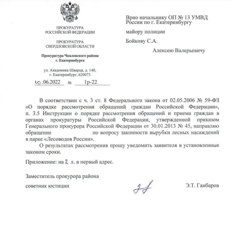 Один из жителей обратился в прокуратуру с просьбой проверить законность вырубки леса