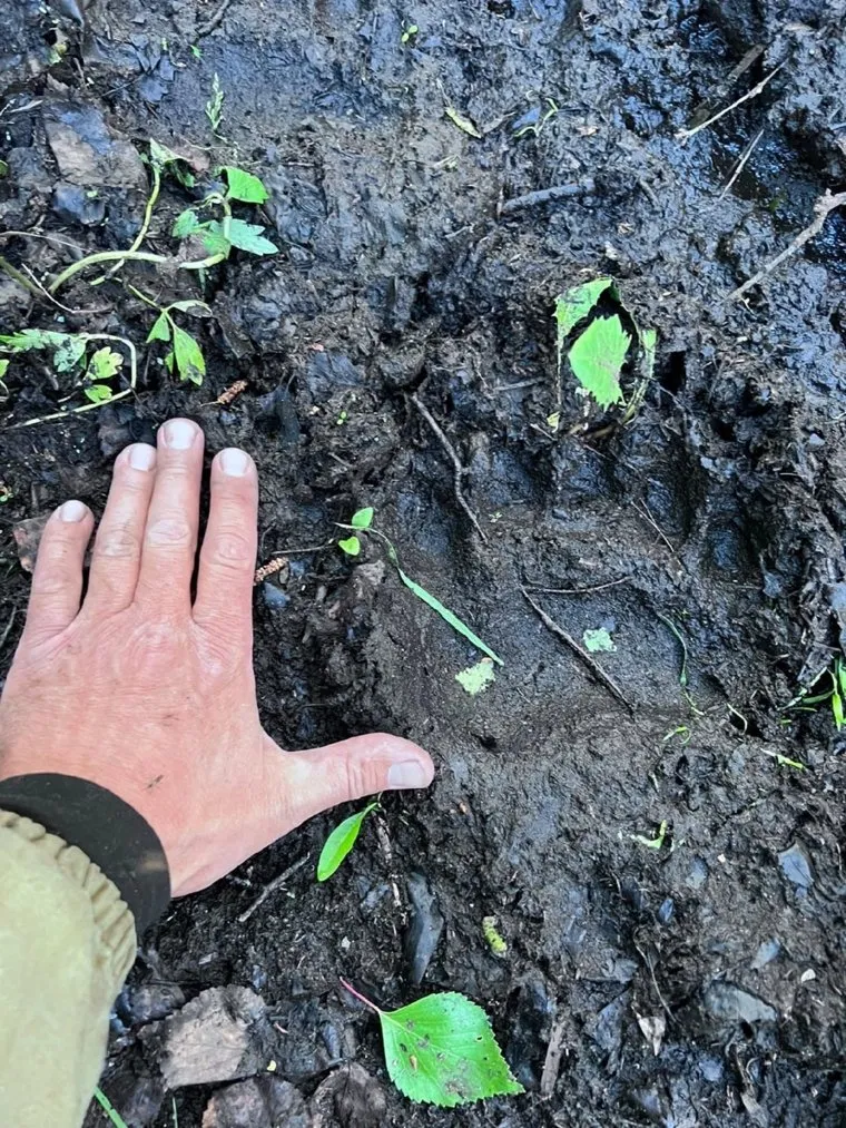 «Идете в лес по грибы? Будьте осторожны! В Тюменском районе, рядом с деревней Падерина тюменец обнаружил следы большого медведя. Возможно весенние пожары выгнали зверя ближе к населенным пунктам», — сообщает издание «Наш город». На опубликованном в посте видео мужчина показывает признаки прошедшего около деревни медведя.