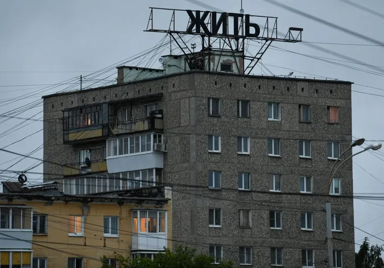 Уличный художник Тимофей Радя создал арт-объект с надписью «жить прошлым» и советским символом в екатеринбургском районе Уралмаш. Об этом автор творчества рассказал в своем telegram-канале «TR».