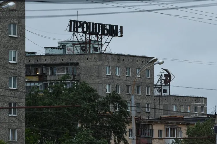 Арт-объект художник создал на трех домах, на первых двух расположилась надпись «жить прошлым», а на третьем доме находится советский символ в виде серпа и молота. Тимофей Радя рассказал, что идея родилась несколько лет назад. По словам художника, он ждал подходящего времени для создания работы.