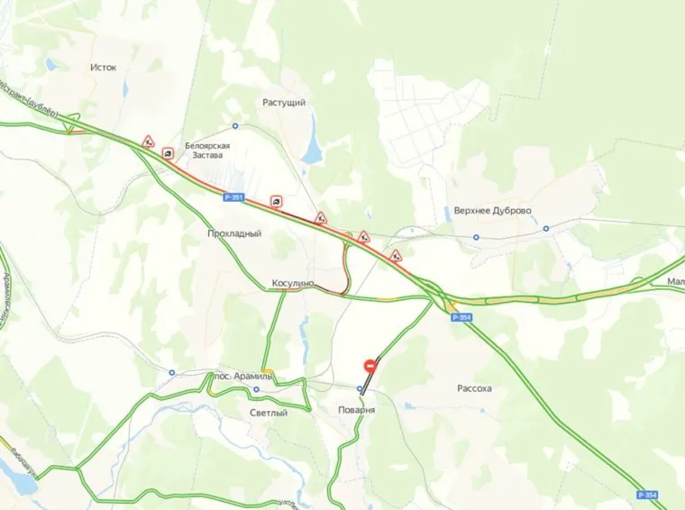 На участке также идет ремонт дороги. «На 13—29-м км автодороги Р-351 производятся дорожные работы. Движение в направлении Екатеринбурга осуществляется по одной полосе», — говорится в сообщении «Уралуправтодора» на картах сервиса.