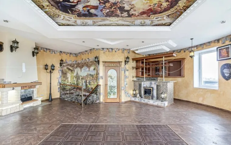 В квартире четыре комнаты, а ее площадь составляет 207 квадратных метров. На фото видно, что ремонт сделан в дворцовом стиле — с позолотой, лепниной, фресками на потолке и камином. Продавцом на сайте указано агентство недвижимости «ВЕСКО».