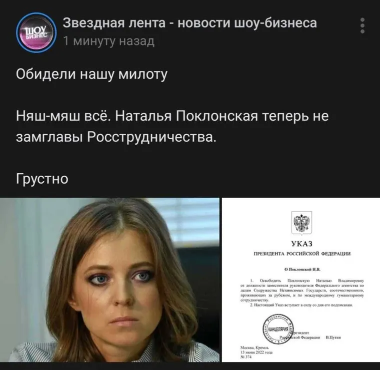 Соцсети попрощались с Поклонской. «Больше не няш-мяш»