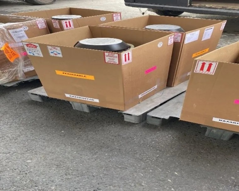 В Свердловскую область груз поступил из Казахстана в 17 специальных сосудах, предназначенных для хранения и транспортировки в состоянии глубокой заморозки. В ведомстве уточнили, что материал соответствовал всем нормам и был подкреплен ветеринарными документами.