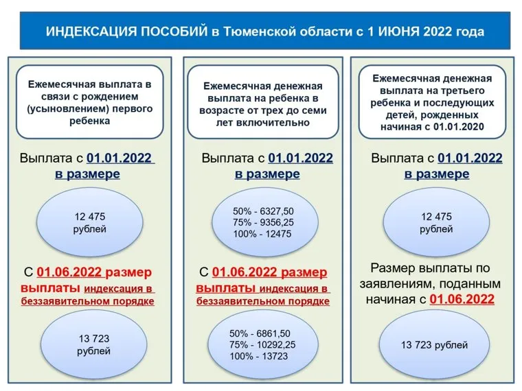 «Проведена индексация выплат, предоставляемых через органы социальной защиты населения. В июне жители получат доплату — разницу между прошлым пособием и новым его размером (за месяц). А с июля начнут получать помощь уже в полном, увеличенном объеме», — рассказали URA.RU в пресс-службе депсоцразвития Тюменской области.