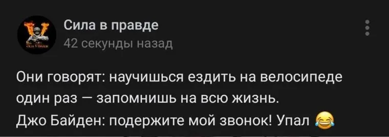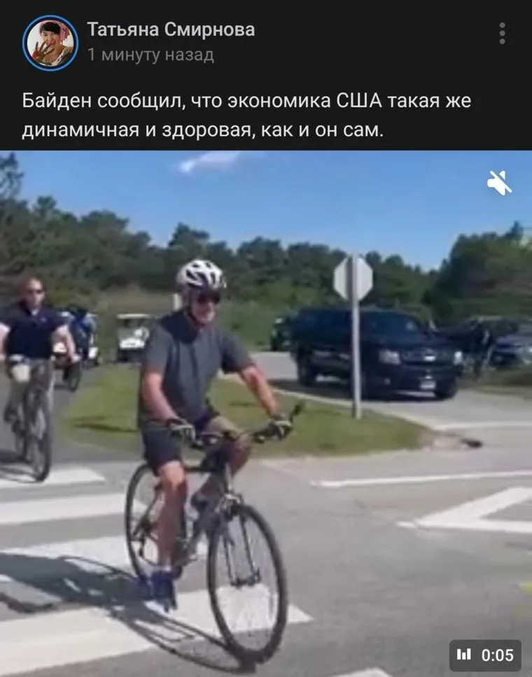 Российские пользователи со злорадством и хохотом восприняли очередной конфуз американского президента Джо Байдена, который во время велопрогулки упал с велосипеда. Курьез в том, что американский лидер, вероятно, запутался в педалях — велосипед во время падения главы Америки уже остановился.