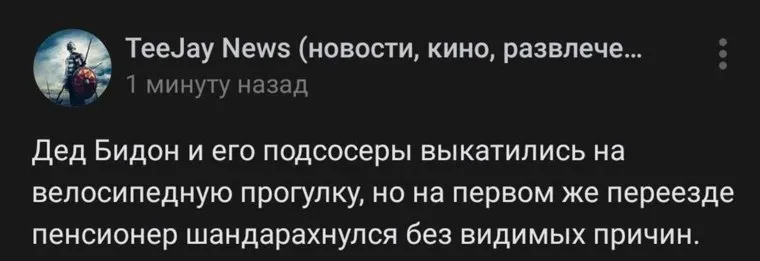 - Пианист20 июня 2022 22:41Оставьте в покое бедного дедушку. Ну упал, ну и что? Дайте ему дождаться ноября и уйти на покой.