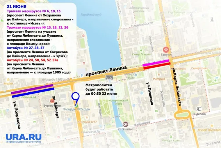 В Екатеринбурге из-за «Свечи памяти» изменят работу транспорта. Инфографика