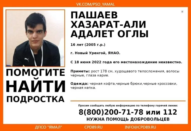 «Молодого человека зовут Хазарат-Али Пашаев. Рост — 178 см, худощавого телосложения, черные волосы и карие глаза. Был одет в кофту, брюки, кроссовки и кепку, все черного цвета», уточняется в группе поисково-спасательного отряда.