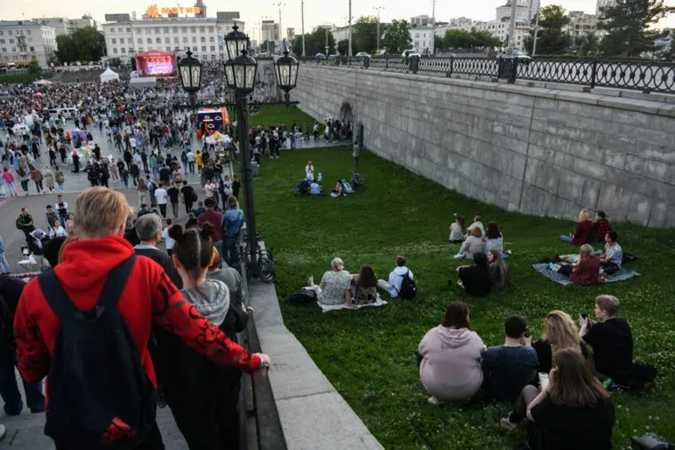 Не протолкнутся и в переходе на Плотинке — люди протискиваются между друг другом. Толпы наблюдаются и у сцены возле Дворца молодежи, где людям становится плохо от духоты. Как сообщает корреспондент URA.RU, одному человеку вызвали скорую помощь. Количество народа заметно и по мусорным бакам. Они оказались заполнены с горкой.