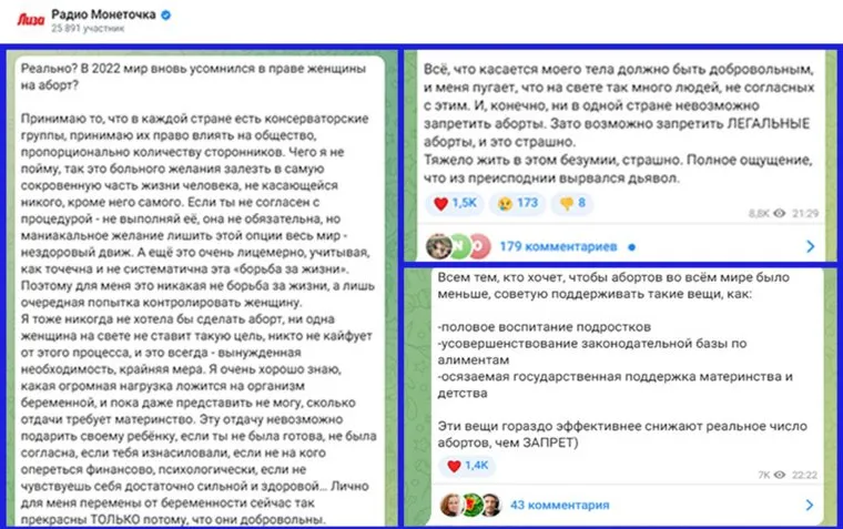 Певица из Екатеринбурга Лиза Монеточка (настоящее имя — Елизавета Гырдымова) высказалась против людей, считающих, что аборты необходимо запретить. Об этом она написала в своем telegram-канале «Радио Монеточка».