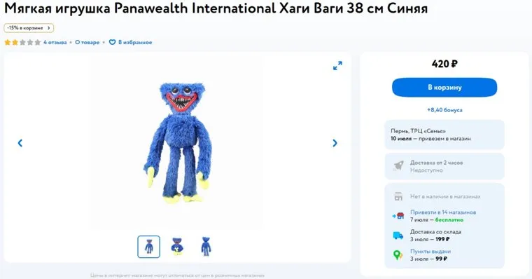 На вопрос, почему нельзя заказать игрушку в маркет-плейсах, женщина ответила, что не факт, что придет то, что должно. По ее словам, знакомым приходили «Хаги Ваги» другого цвета или игрушка без ног — только мордочка.