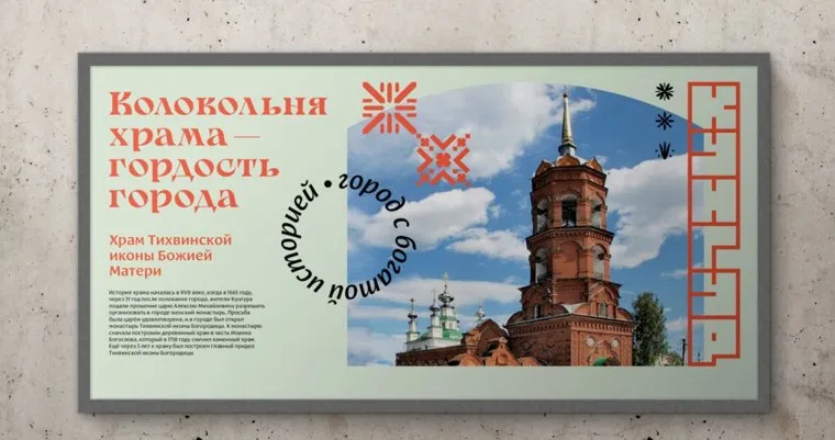 «Дизайнеры представили концепт туристической айдентики Кунгура — визуальной части бренда. Она включает в себя логотип, паттерн, визитки, упаковку, билборды, посты в соцсетях и любые другие носители графики, видео или звука. В основе разработки айдентики нашего города — название города, архитектурные элементы и история Кунгура. Также дизайнеры разработали индивидуальный акцидентный шрифт специально для Кунгура и назвали его „Ирень“», — сообщает мэрия в соцсети «ВКонтакте».