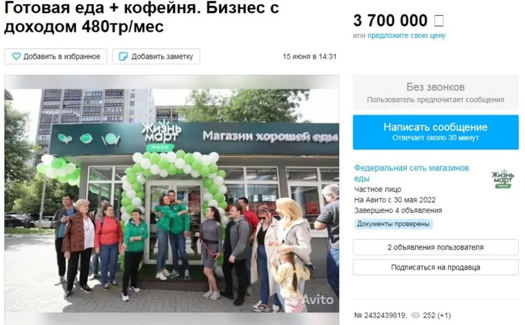 «Готовая еда + кофейня. Бизнес с доходом 480 тысяч рублей в месяц. Станьте владельцем своего магазина „Жизньмарт“ в лучших локациях Челябинска», — указано в объявлении на сайте «Авито», размещенного от автора «Федеральная сеть магазинов еды».