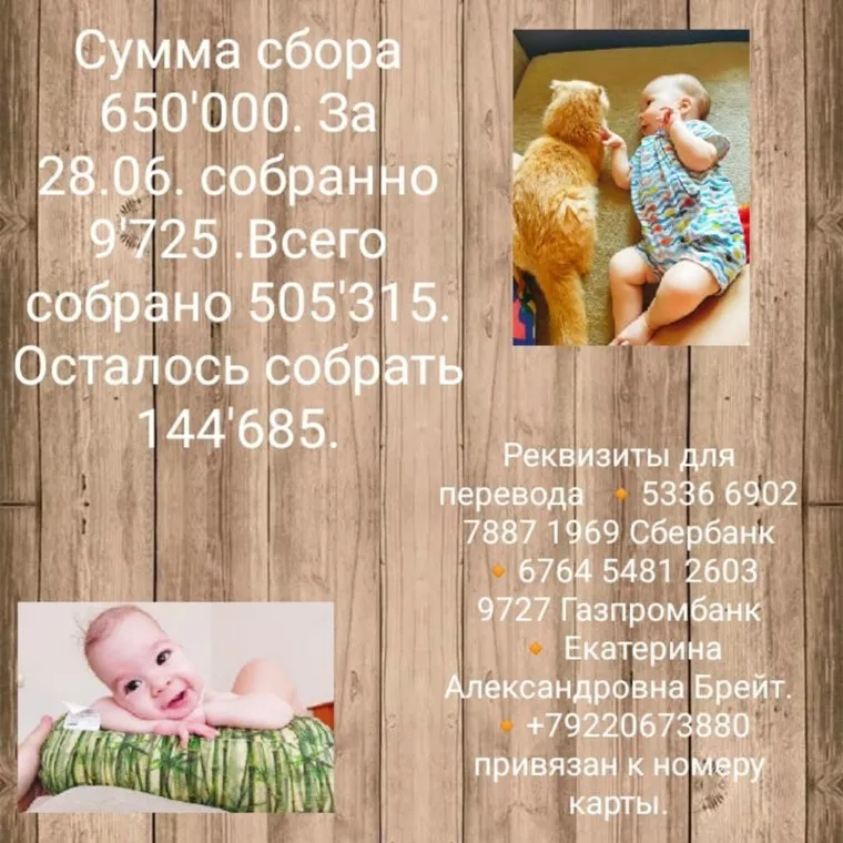 - Ната03 июля 2022 15:20Осталось собрать сущую ерунду. Нет оснований для уныния. Просто кинь рублик и помоги. А что касается про рожают, слава богу рожают. Вон людей у нас мало как, А нам нужен каждый и эта крошечка вырастит в нормального человека нашего гражданина. Да жаль что невозможно всех регионах хватает средств на медпомощь, но у нас хватит. Здоровья этой крохе и всем в его семье. А деньги-картинки на бумаге-самое простое, чем мы можем помочь и доказать что иногда за них можно купить счастье.