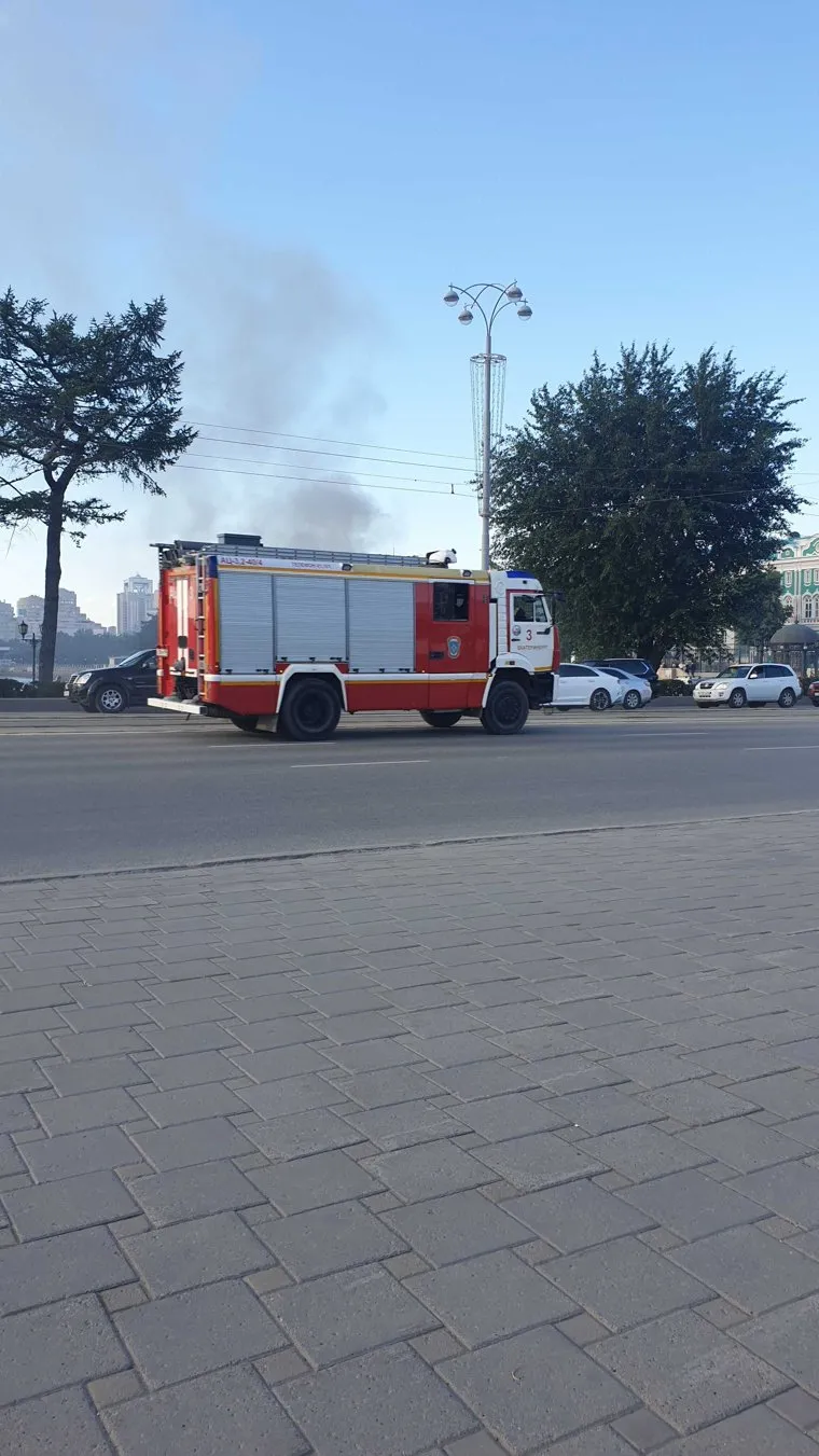 В Екатеринбурге в центре города на пересечении улиц Пролетарская и Первомайская горит крыша здания. Об этом сообщают читатели URA.RU