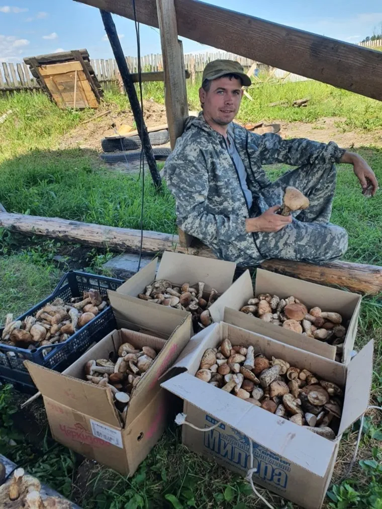Житель деревни Ордино Белозерского района Курганской области Евгений Мостовских собрал пять коробок грибов за короткий срок. Об этом URA.RU рассказал сам мужчина.
