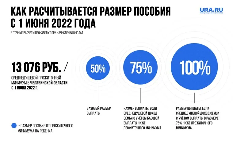 «В зависимости от доходов семьи пособие может выплачиваться в 100, 75 и 50-процентном размере. Базовый размер выплаты составляет 6844 руб., что соответствует 50% прожиточного минимума на ребенка. Но величина пособия может быть увеличена до 75% от прожиточного минимума на подростка в регионе (10266 руб.), если с учетом пособия достаток семьи не превысил прожиточного минимума. Третий вариант — пособие может составлять 100% (13688 руб.), если среднедушевой доход семьи и выплата в размере 75% не превысят прожиточного минимума на человека», — пояснили в региональном отделении ПФР.