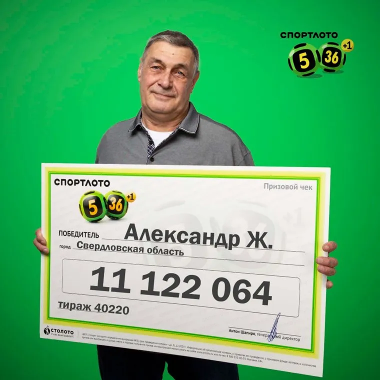 Житель Свердловской области Александр Ж. выиграл в лотерее «Спортлото «5 из 36» суперприз — 11 122 064 рубля. Свои эмоции по поводу победы счастливец сравнил с единственной любовью и первым танцем, говорится в пресс-релизе «Столото».