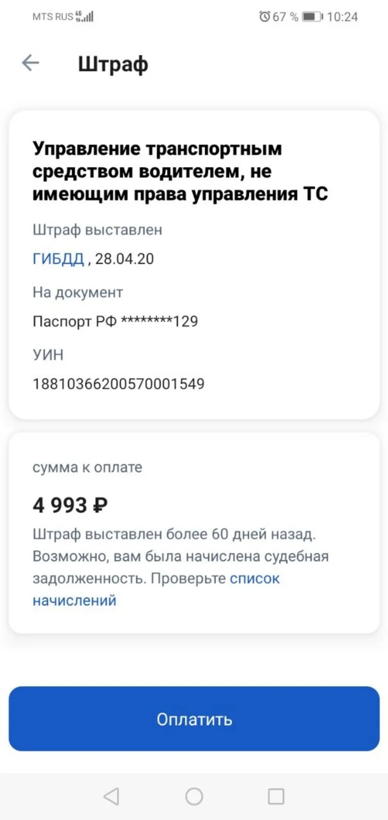 - Николай09 июля 2022 17:31У меня такая же ситуация,выставили просто штраф по паспорту.Обошел все кабинеты в полиции,никто мне штраф не выписывал,а на госуслугах висит.Госуслуги заявляют мы тут ни при чем.