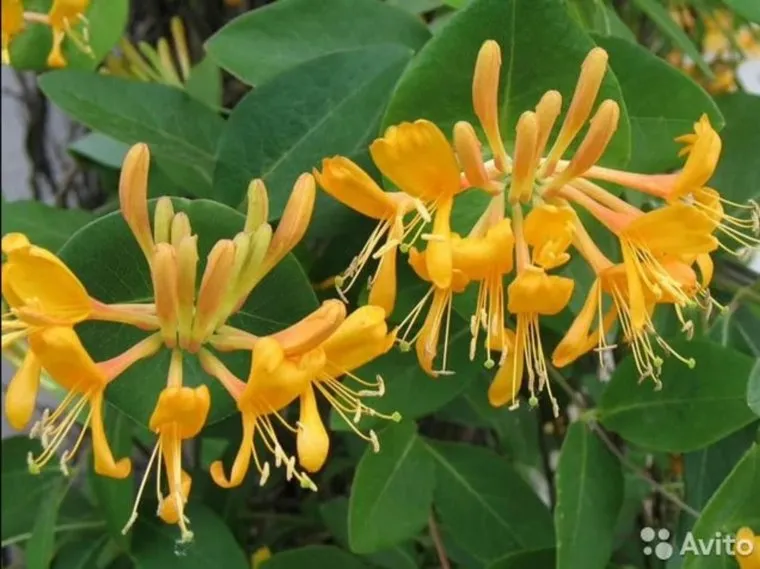 Также в Кургане продают жимолость Тельмана, один саженец за 650 рублей. «Декоративная лиана растет до 4-5 м в высоту. Цветки трубчатые, в длину достигают 4-5 см, собираются в мутовки на концах побегов, окрас — желто-оранжевый. Обильное цветение происходит в июне—июле. Листья растения овальные или яйцевидно-эллиптические, оранжевые плоды появляются в конце июля», — сообщает продавец.