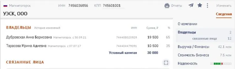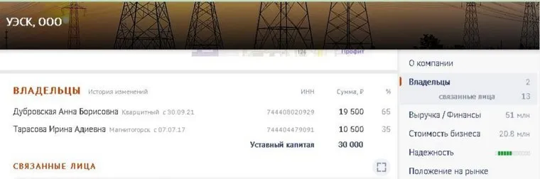 Согласно СБИС, владеющая шестью компаниями Дубровская теперь зарегистрирована как налоговый резидент Троицкого района Челябинской области. В Кварцитном зарегистрировано принадлежащее бизнес-леди ООО «Бобровский завод железобетонных конструкций „Энергия“», а также ООО «Песчано-гравийный карьер». Последнее предприятие принадлежит ее брату Александру Дубровскому, ныне признанному банкротом .