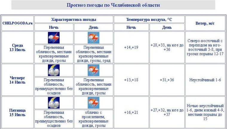 «В ближайший час и до конца суток 13 июля в Челябинской области ожидаются грозы, очень сильные дожди, сильные ливни, крупный град, шквалистое усиление ветра 20-25 метров в секунду. В отдельных районах области 13—15 июля ожидается высокая пожарная опасность (IV класс горимости леса по региональной шкале), а на крайнем юге — чрезвычайная пожарная опасность (V класс горимости леса)», — говорится в экстренном предупреждении.